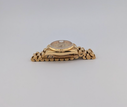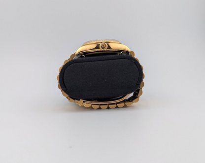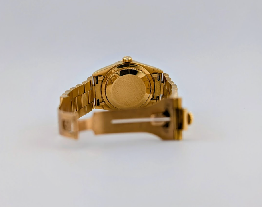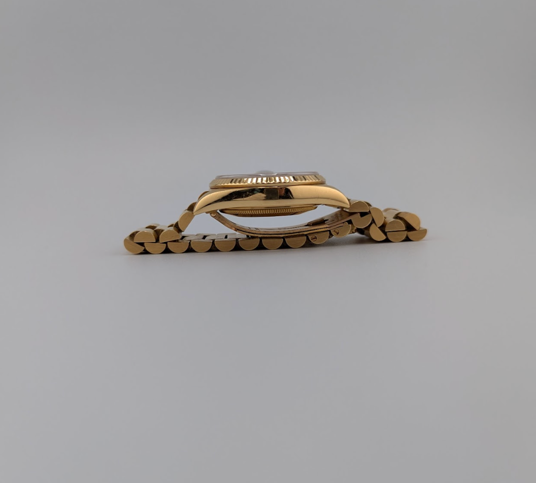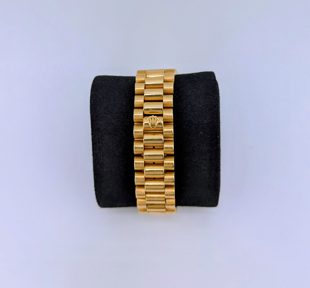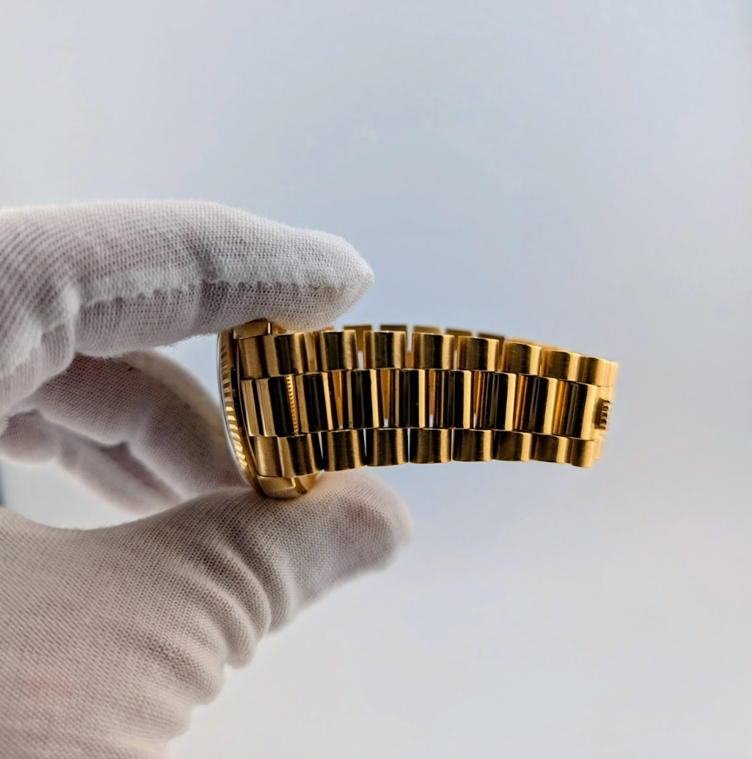 For those who demand more than style — here’s elegance, status, and precision. This genuine 1988 Rolex Day‑Date Ref. 18238, crafted in solid 18K yellow gold, features an exquisite champagne dial adorned with factory diamond markers. The double‑quickset calibre 3155 ensures easy day & date adjustments. Paired with the iconic President bracelet and fluted bezel, every glance reflects heritage and quality. This is a fantastic example that embodies the spirit of "the President’s watch" — perfect for collectors, executives, or anyone who knows true luxury.